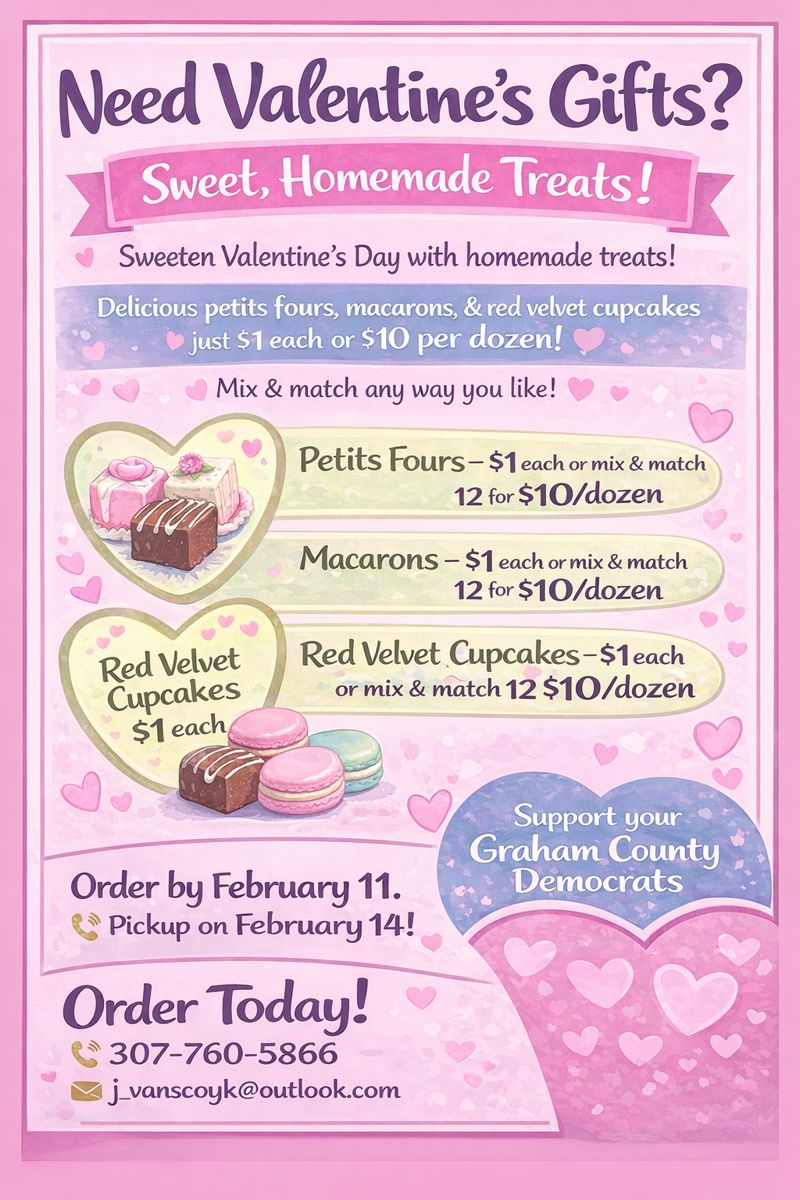 Graham County residents are invited to sweeten their Valentine’s Day while supporting the Graham County Democrats through a festive homemade treat fundraiser.